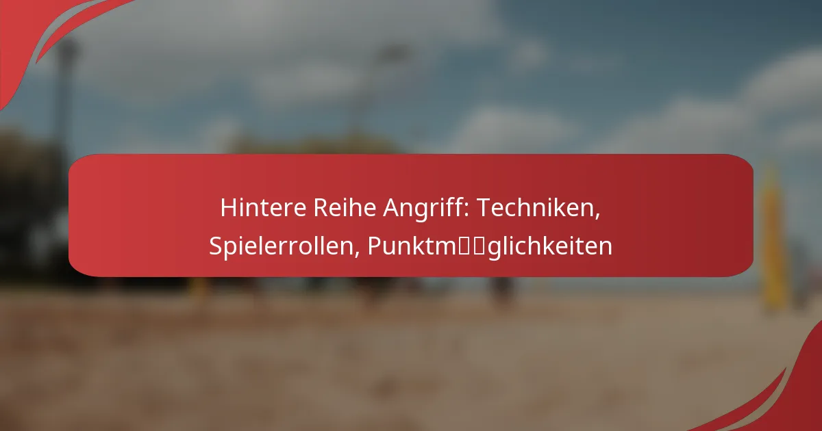 Der Angriff aus der hinteren Reihe ist eine dynamische offensive Strategie, bei der Spieler kraftvolle Schläge von der Hinterlinie aus ausführen, indem sie Techniken wie präzise Fußarbeit und Timing nutzen. Dieser Ansatz erhöht nicht nur das Scoring-Potenzial, sondern betont auch die Bedeutung der Spielerrollen beim Übergang von der Verteidigung zur Offensive und fördert die effektive Kommunikation mit den Mitspielern in der vorderen Reihe. Durch die Nutzung verschiedener Scoring-Optionen können Teams strategisch defensive Schwächen ausnutzen, um Punkte zu sichern und ihre Gesamtleistung zu verbessern.