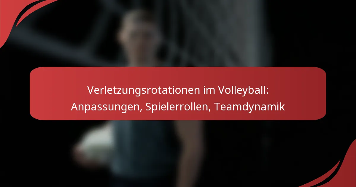Verletzungsrotationen im Volleyball beinhalten strategische Anpassungen, um verletzte Spieler zu berücksichtigen, sodass die Teams während der Spiele wettbewerbsfähig bleiben können. Diese Rotation hat einen erheblichen Einfluss auf die Teamdynamik und die Rollen der Spieler, was effektive Kommunikation und Anpassungsfähigkeit erfordert, um sicherzustellen, dass die Leistungsniveaus trotz wichtiger Abwesenheiten hoch bleiben.