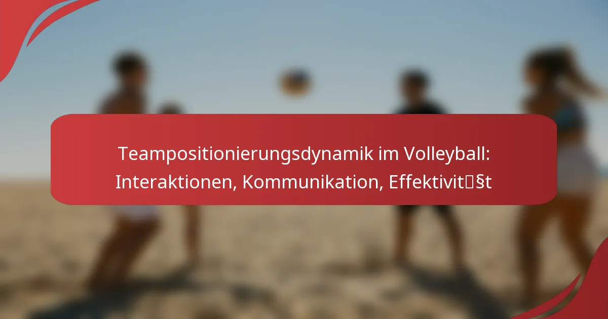 Die wichtigsten Interaktionen in der Teampositionierung im Volleyball beinhalten effektive Kommunikation, sowohl verbal als auch nonverbal, zwischen den Spielern, um eine optimale Platzierung und Bewegung auf dem Feld sicherzustellen. Diese Interaktionen verbessern das Situationsbewusstsein und fördern starke Beziehungen, die entscheidend für die Aufrechterhaltung der Team-Effektivität während des Spiels sind.